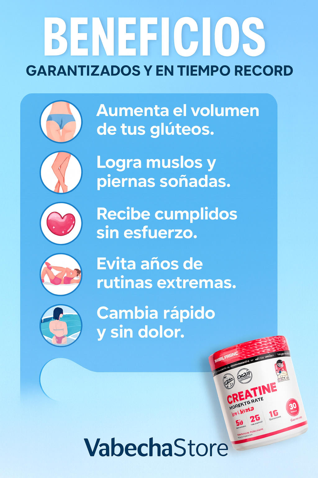 Sí, es completamente segura. La creatina es uno de los suplementos más estudiados y apto para mujeres que entrenan o buscan mejorar su rendimiento.